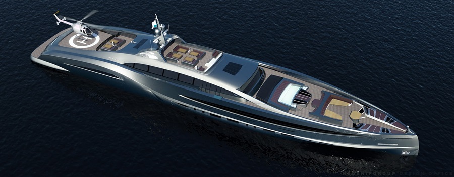 Cuenta con dos motores V8, una piscina, una cama de agua y hasta un helipuerto. Su capacidad para albergar hasta 75 personas redefine el concepto de espacio y lujo.